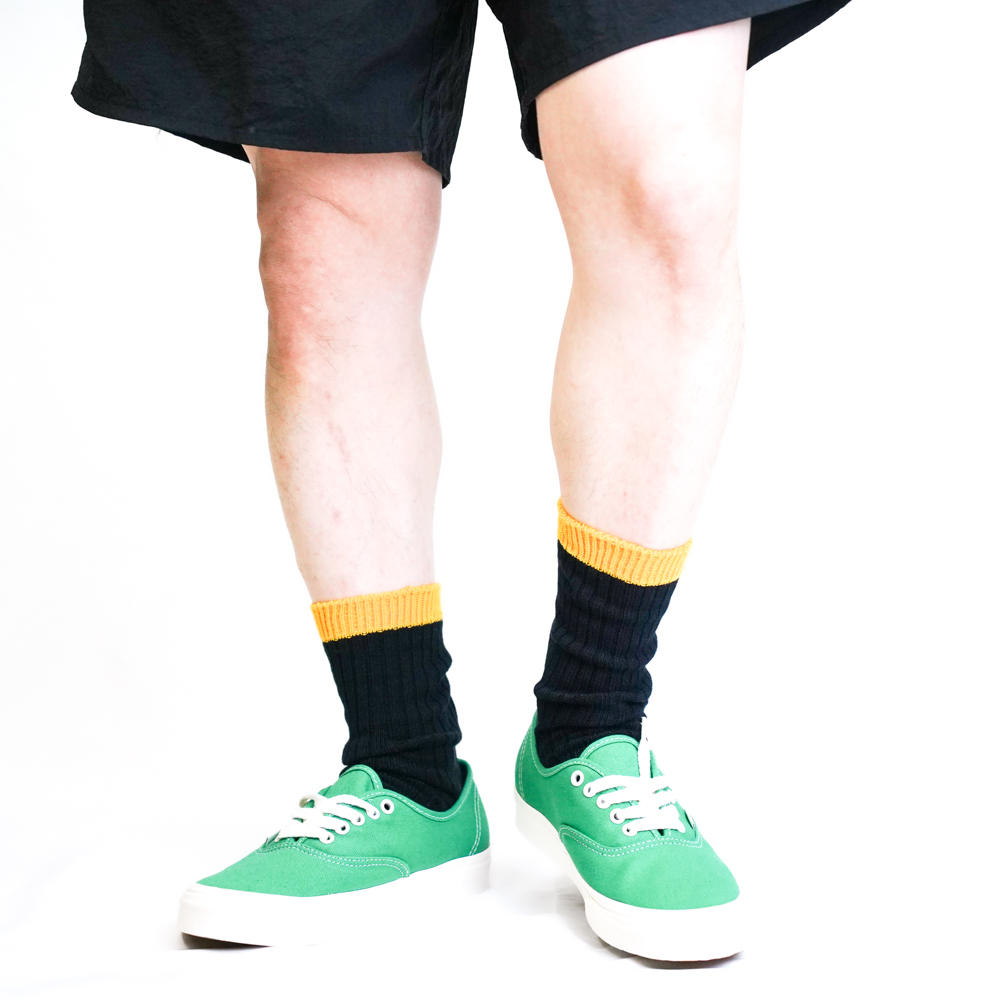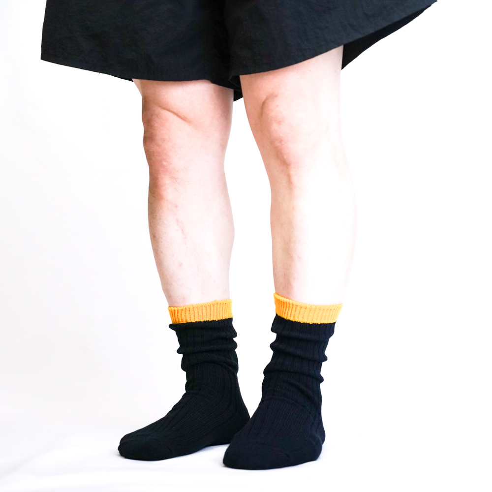 履き口にアクセントとしてイエローを配色し、履くときに気分が上がるソックスです。