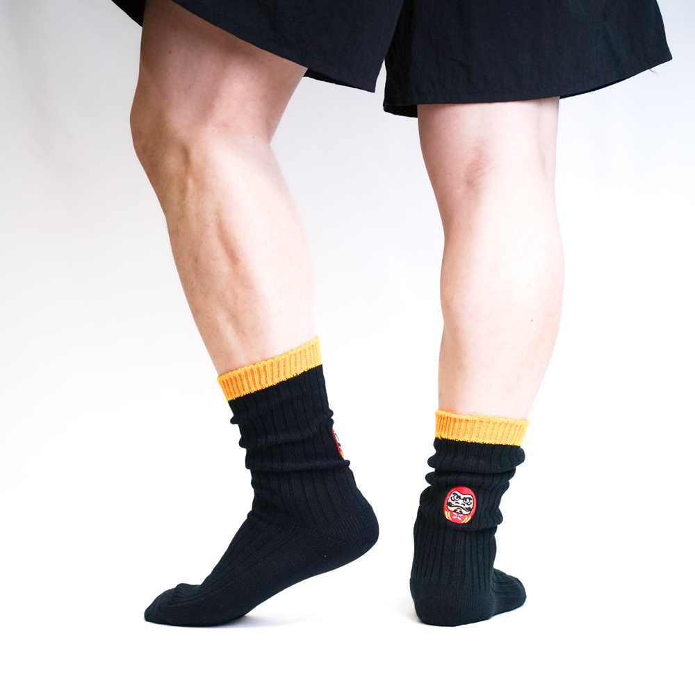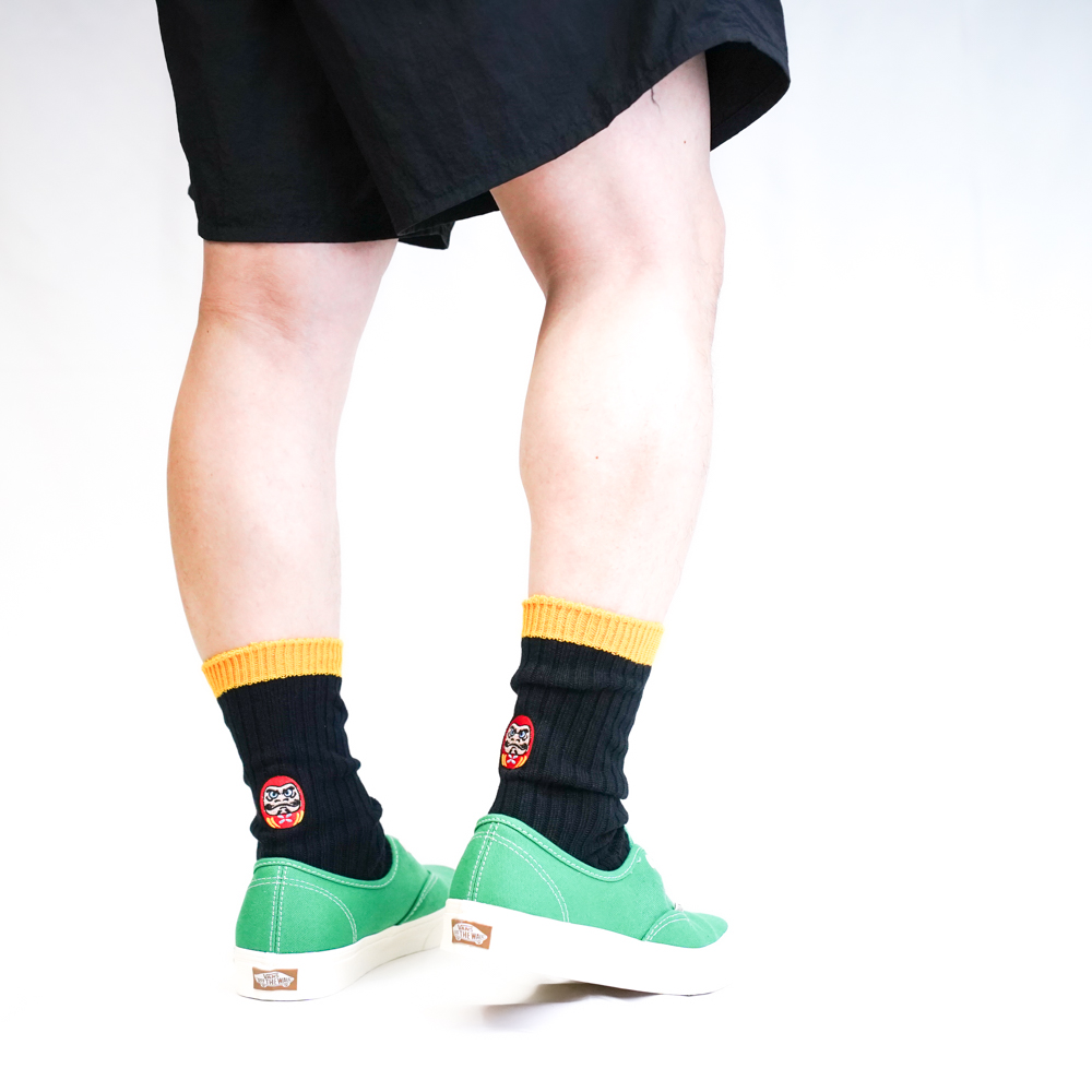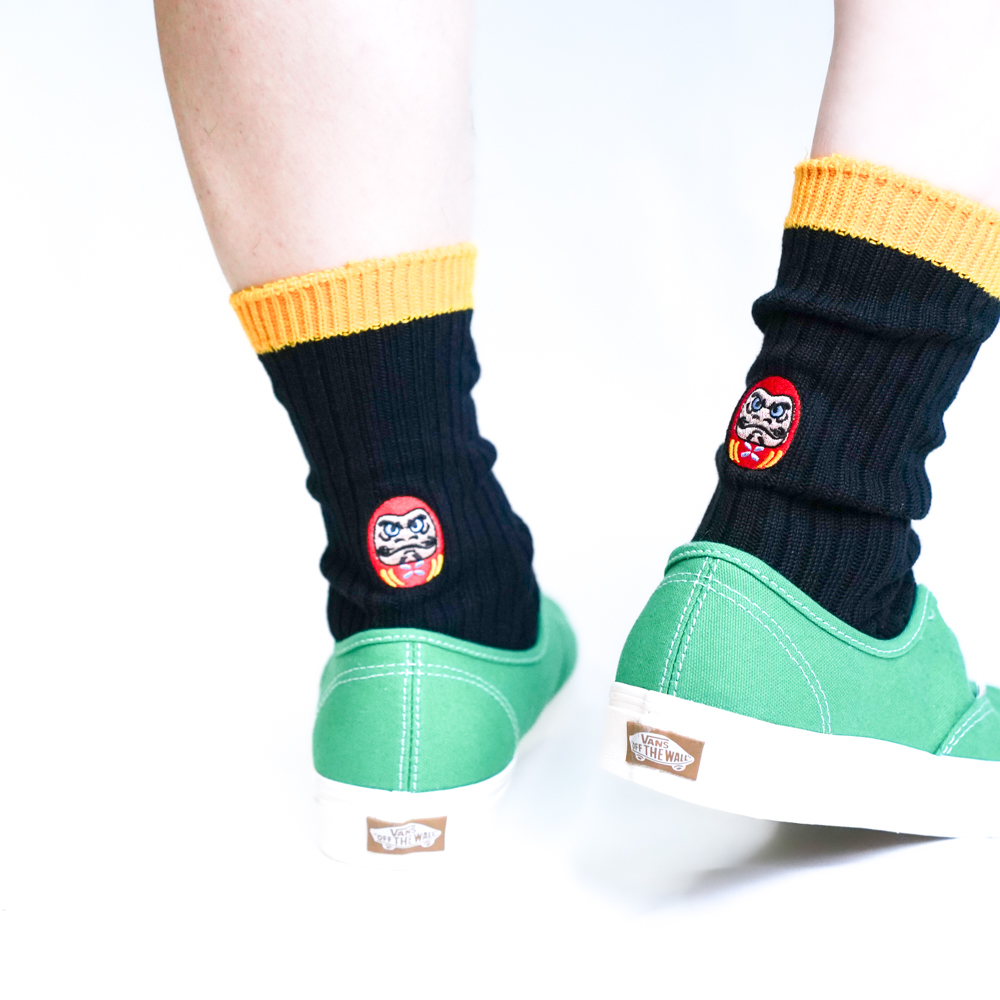 だるま刺繍ソックス ブラック/イエロー【Men】