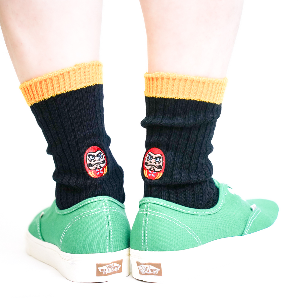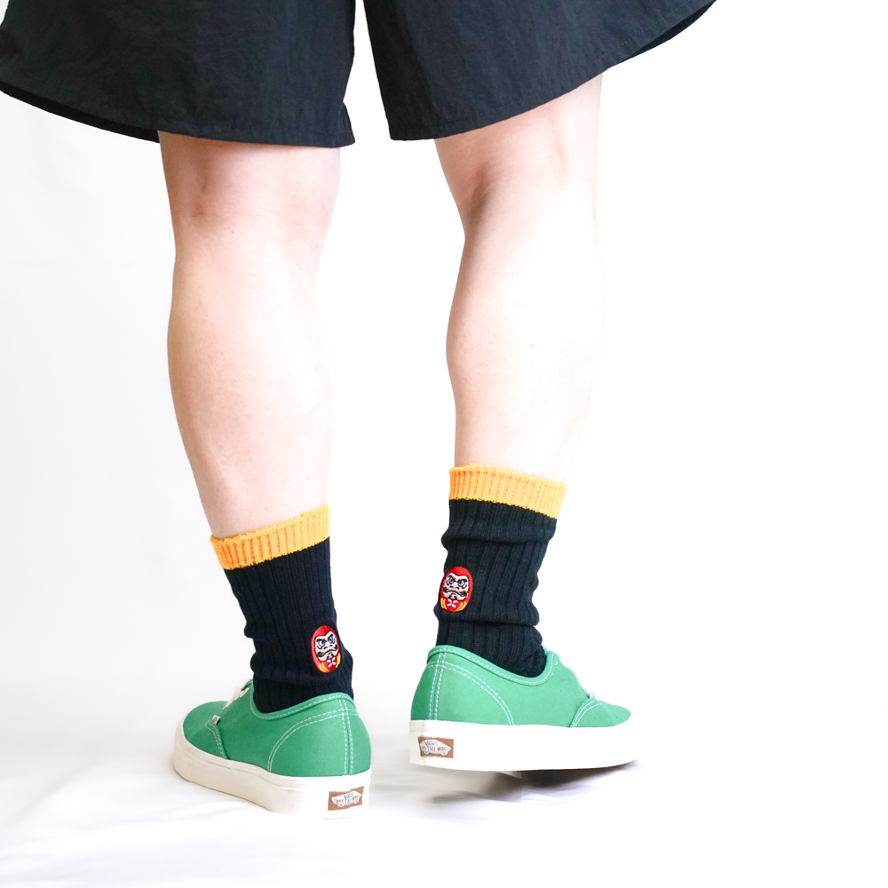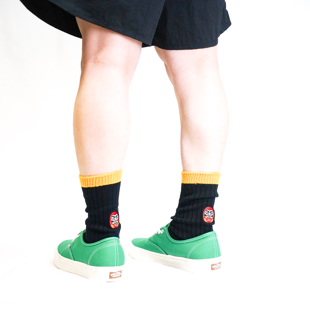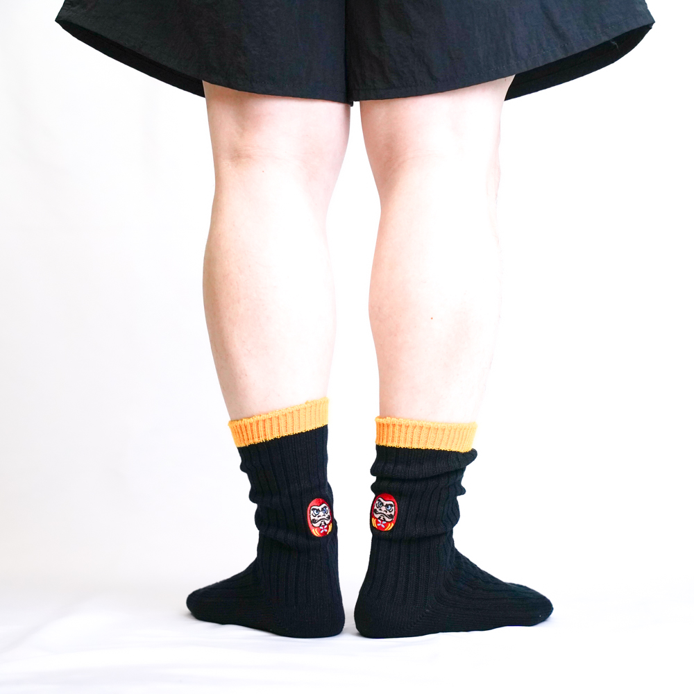 だるま刺繍ソックス ブラック/イエロー【Men】