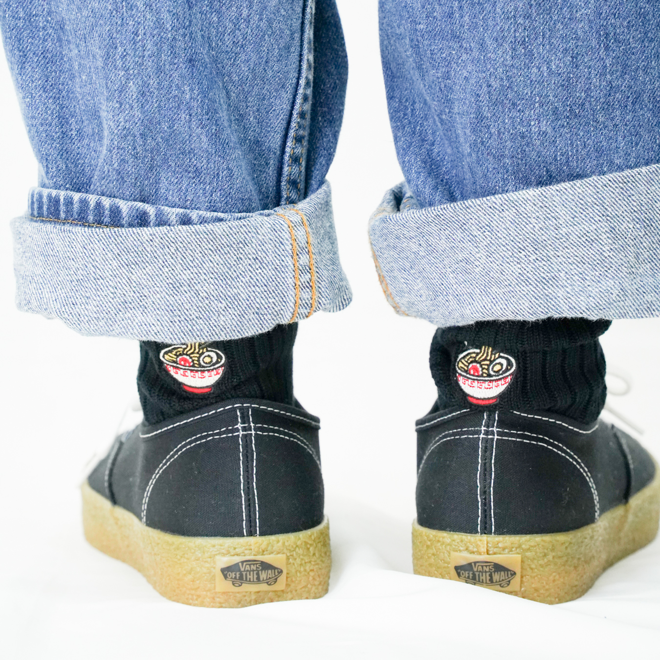 コーマ綿を100%使用した、遊び心のあるオールドスクールタトゥーライクなラーメンの刺繍がチラリと顔を覗かせる、唯一無二のソックスです。