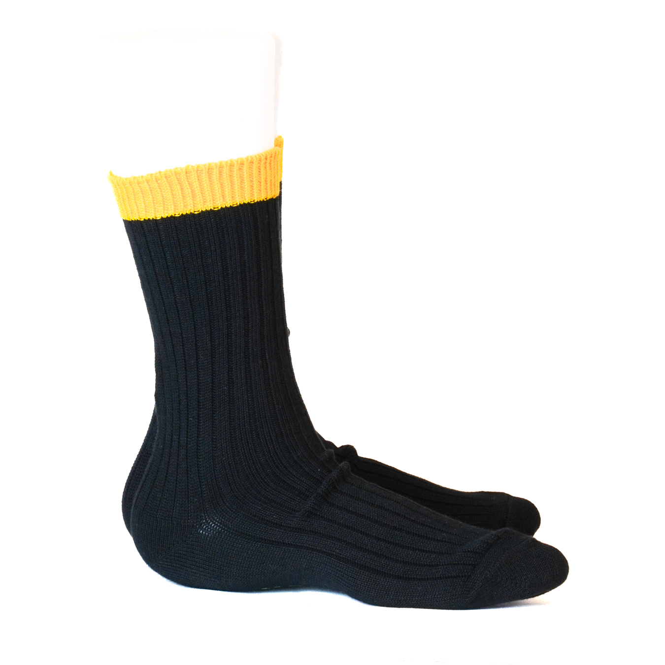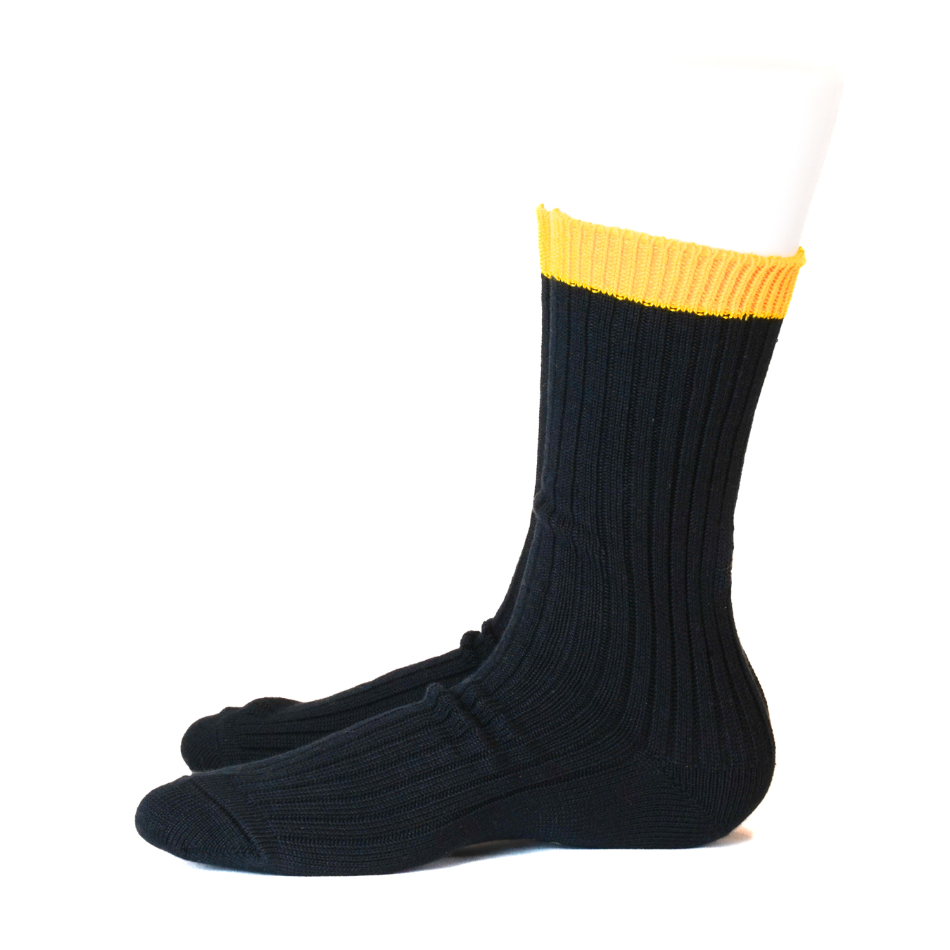 履き口にアクセントとしてイエローを配色し、履くときに気分が上がるソックスです。