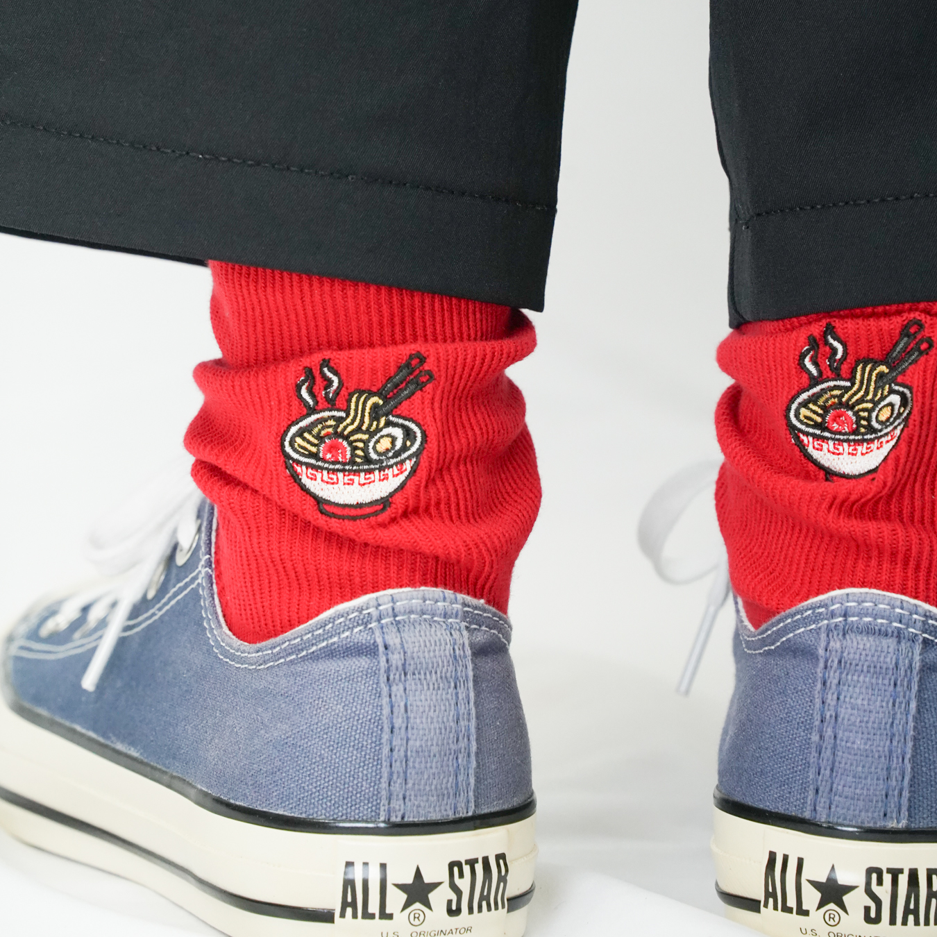ラーメン刺繍ソックス レッド【Women】