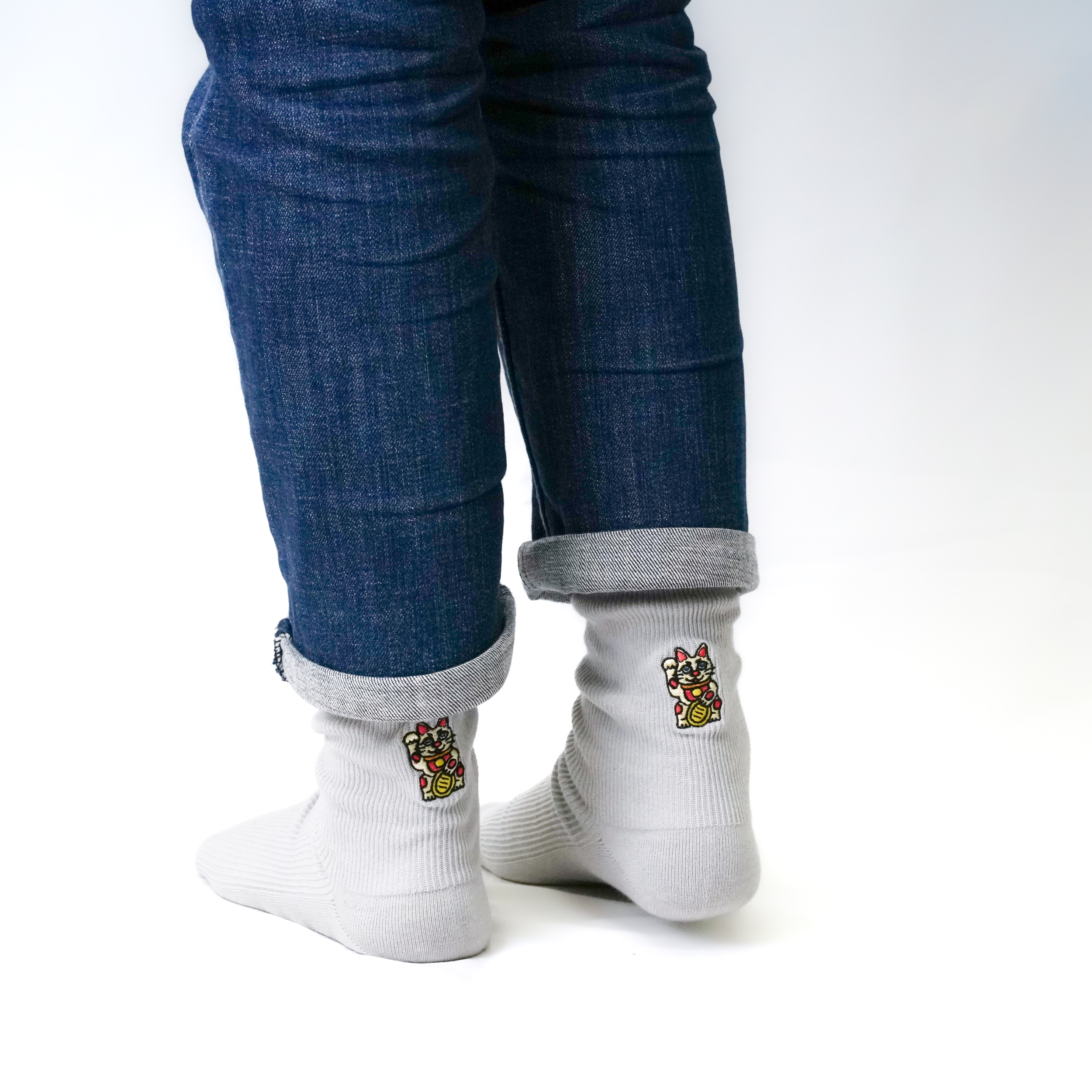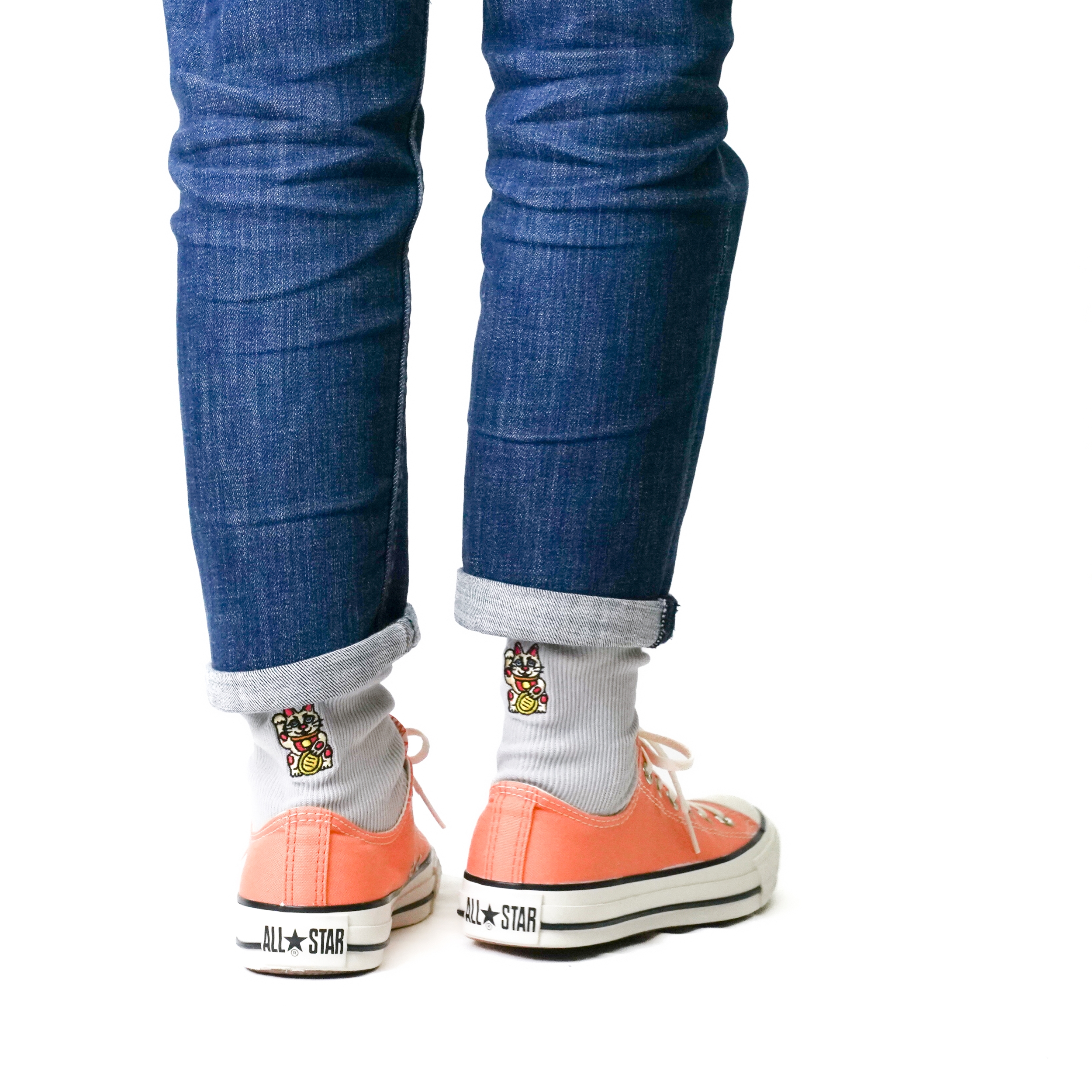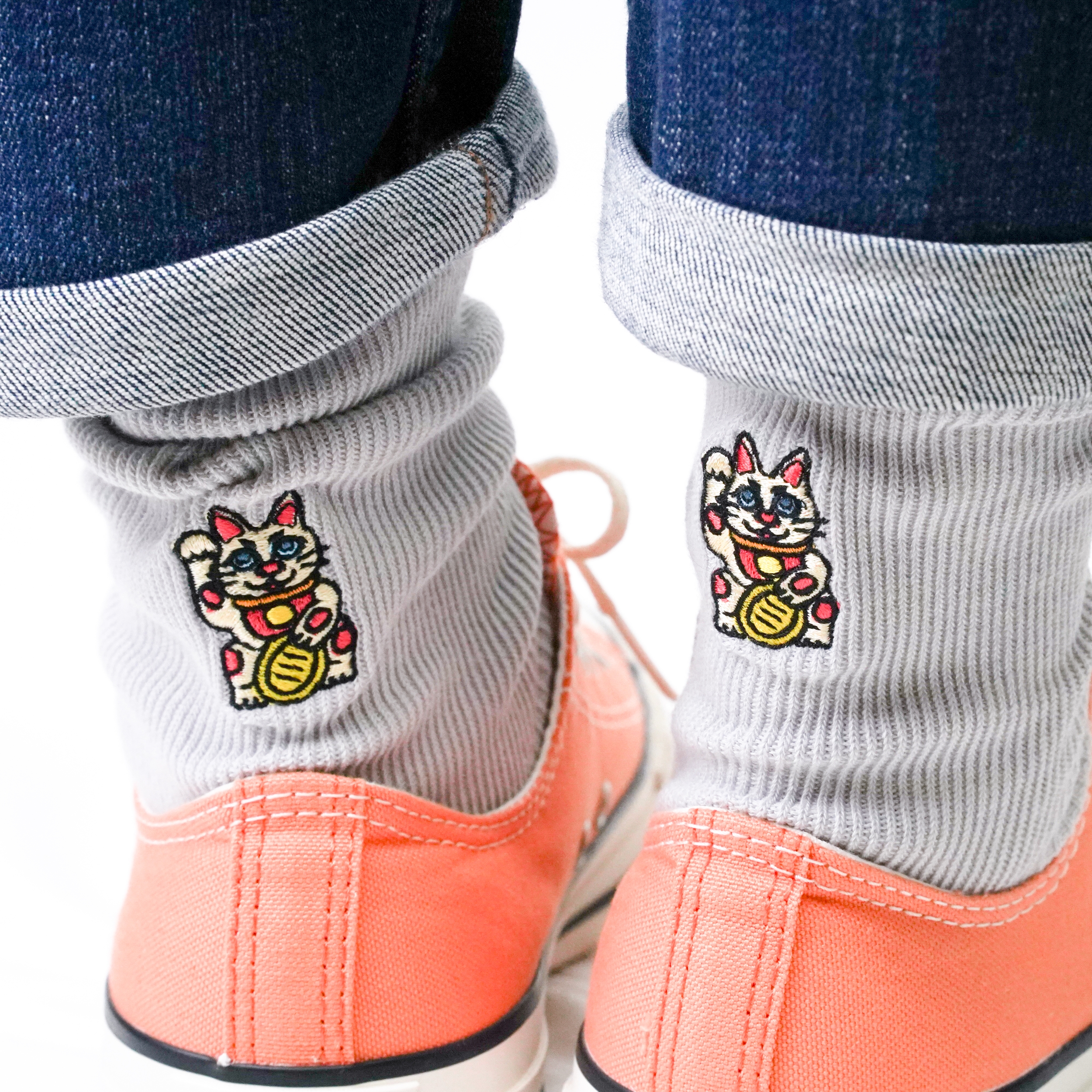 高級コーマ綿を使用した、招き猫の刺繍がチラリと顔を覗かせるソックスです。