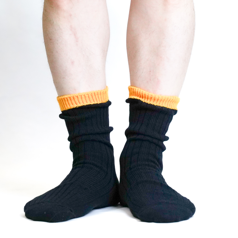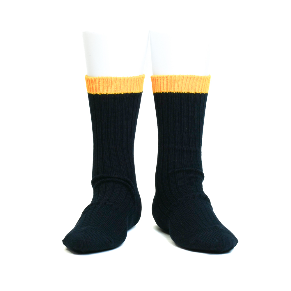 履き口にアクセントとしてイエローを配色し、履くときに気分が上がるソックスです。