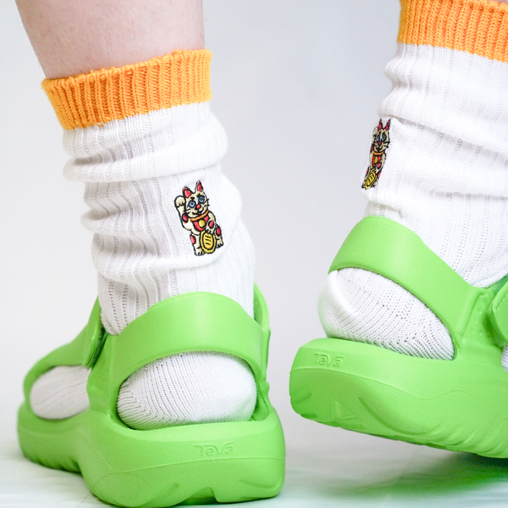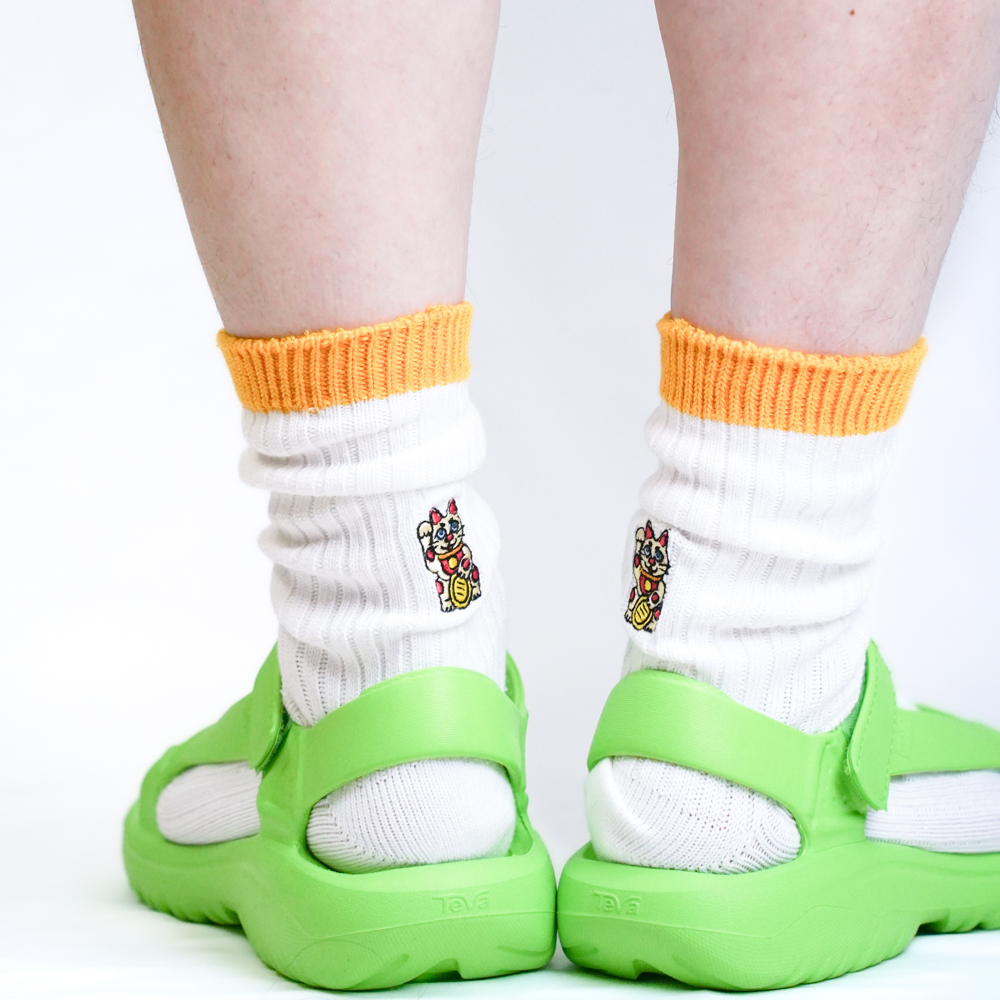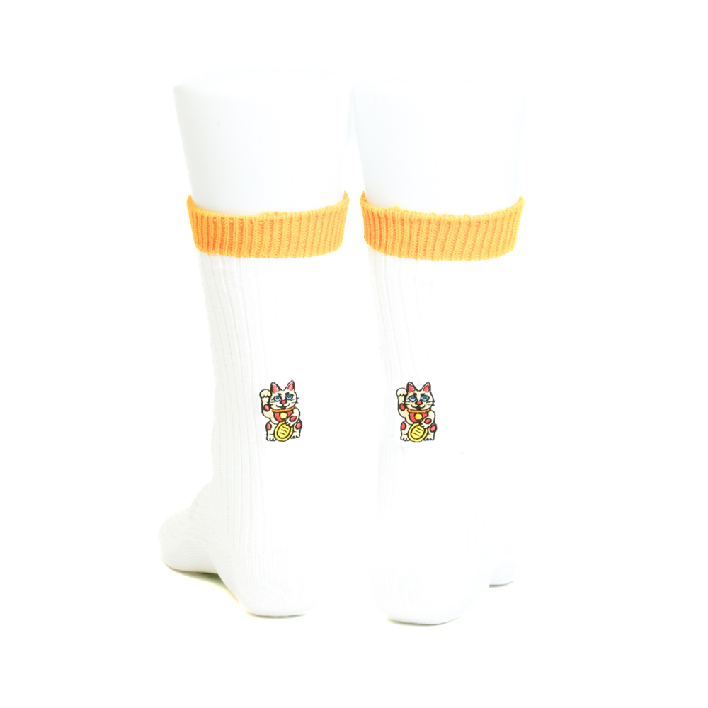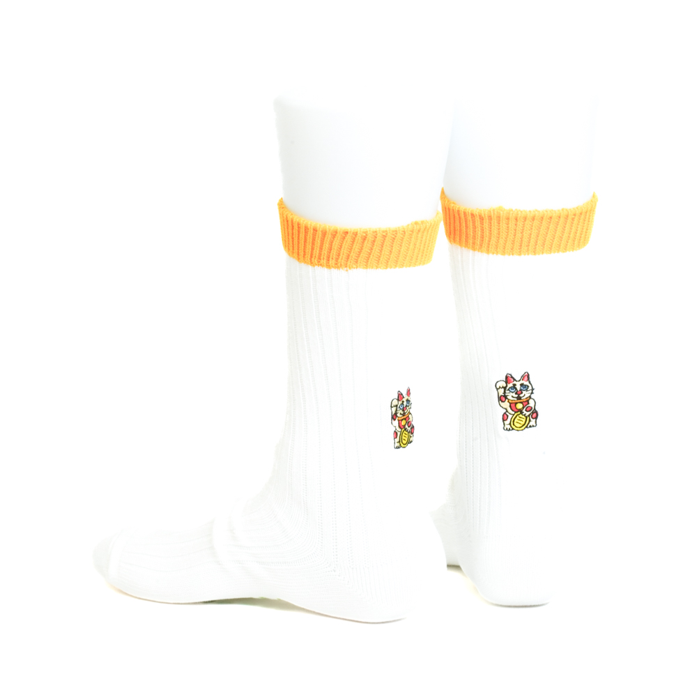 招き猫刺繍ソックス ホワイト/イエロー【Men】