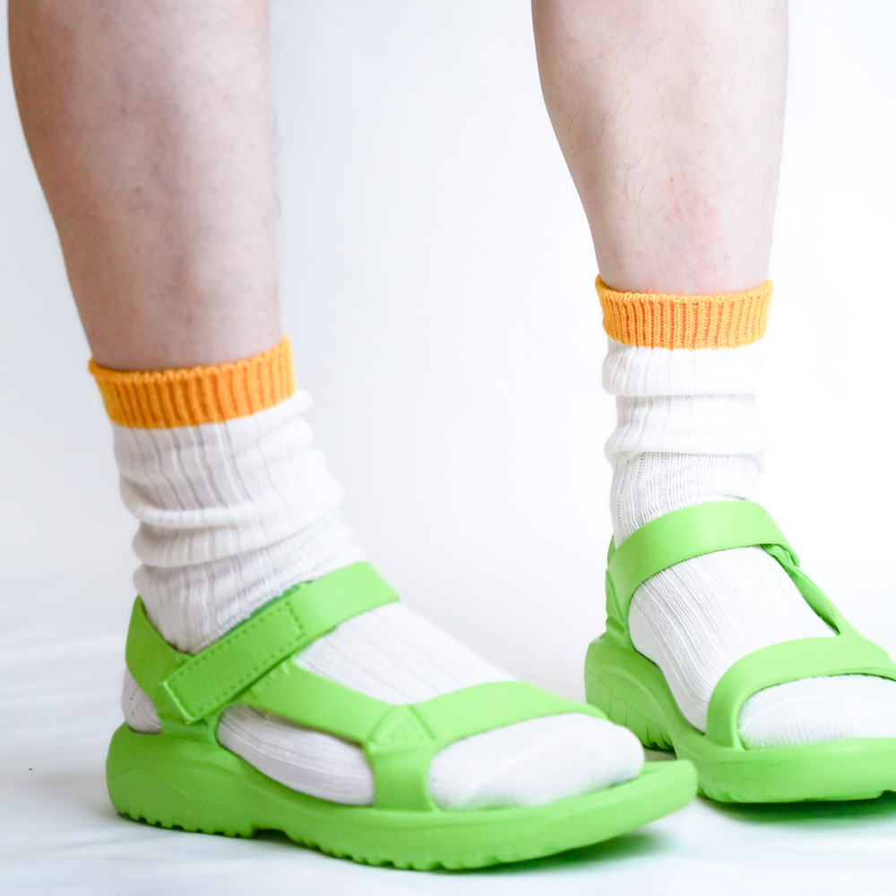 履き口にアクセントとしてイエローを配色し、履くときに気分が上がるソックスです。