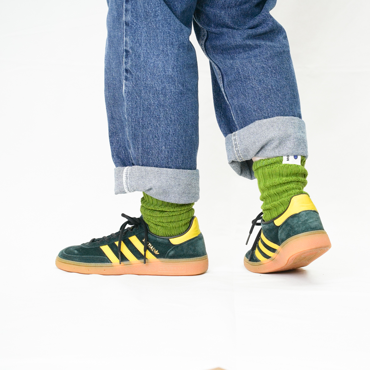 ざっくりと編まれた生地が特徴のカラフルなリブソックスです。