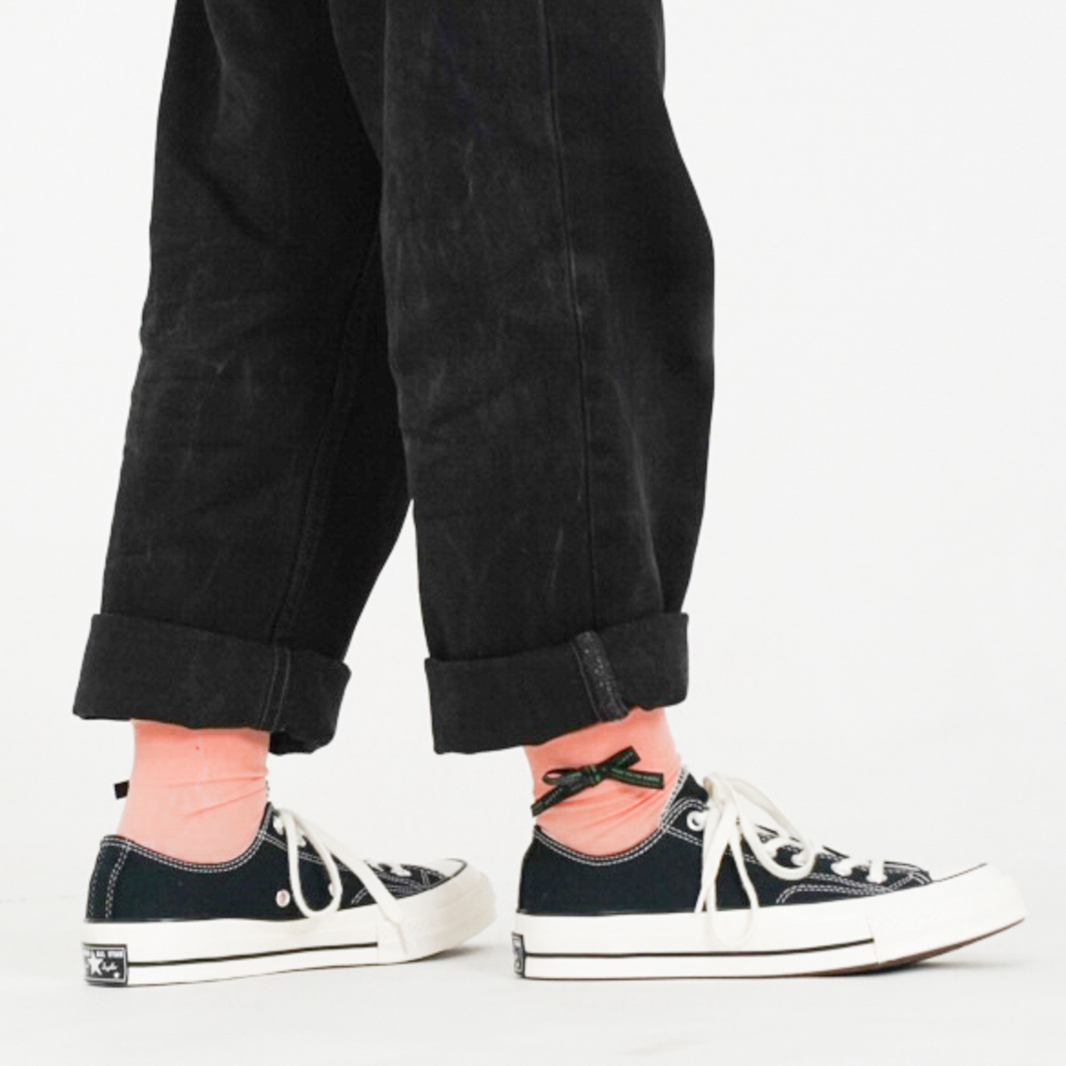 ゴムなしFIT仕様なので足首を締め付けないのにずり落ちにくい造りになってます。生地が薄いのでパンプス、カジュアルいろんな使い方の出来るソックス。