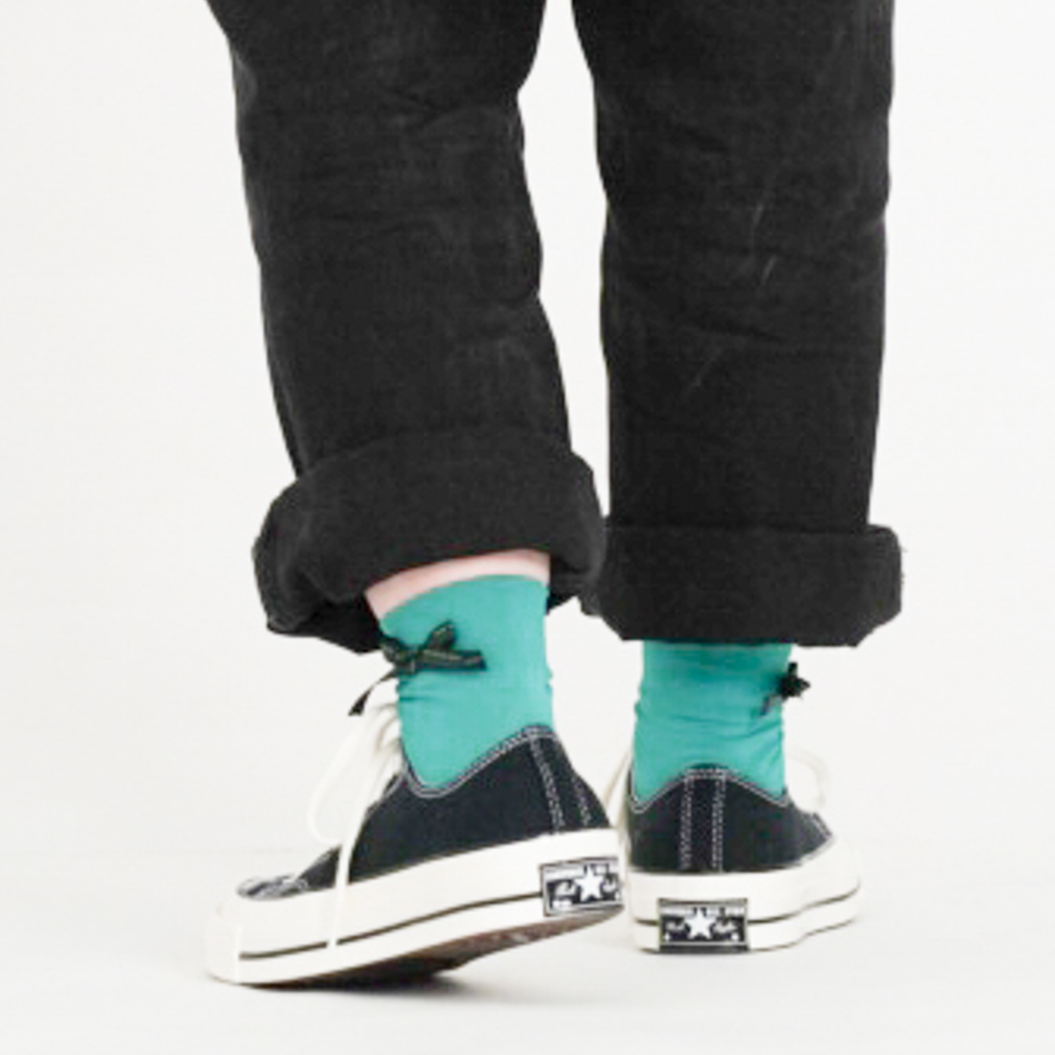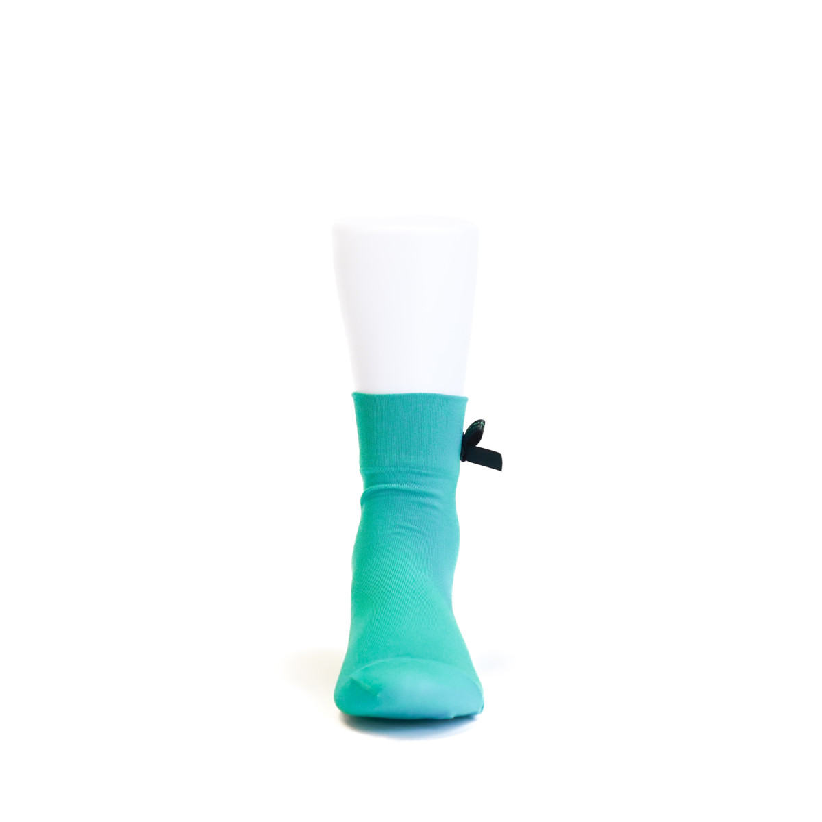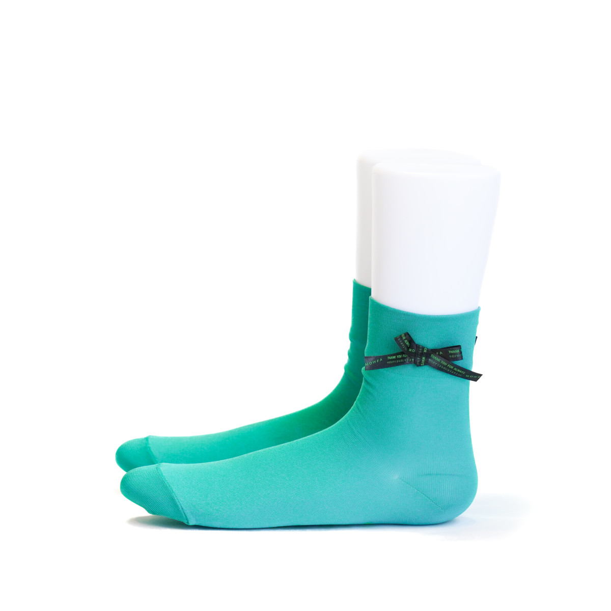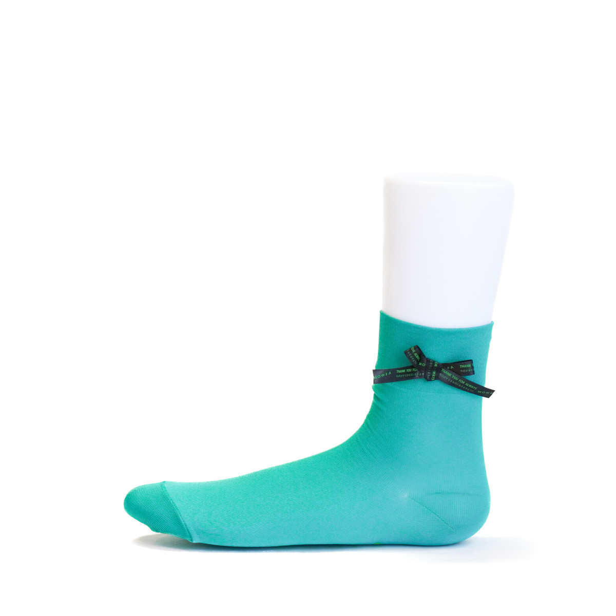 【メッセージリボン】プレーンゴム無しソックス ターコイズ【Women】