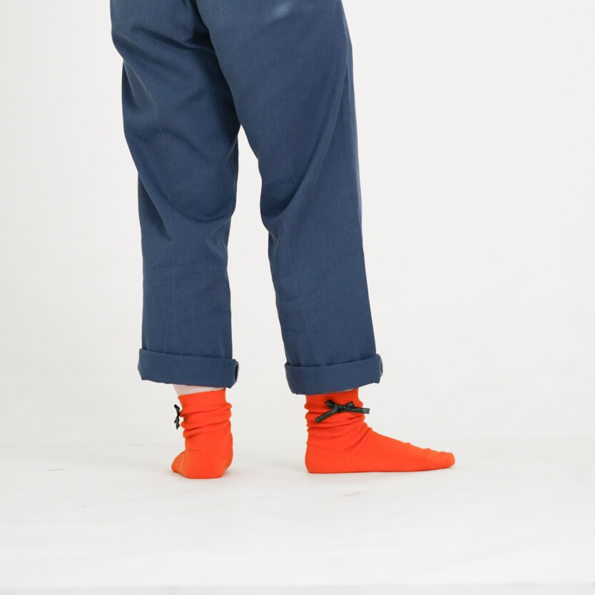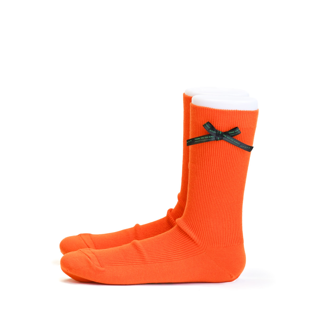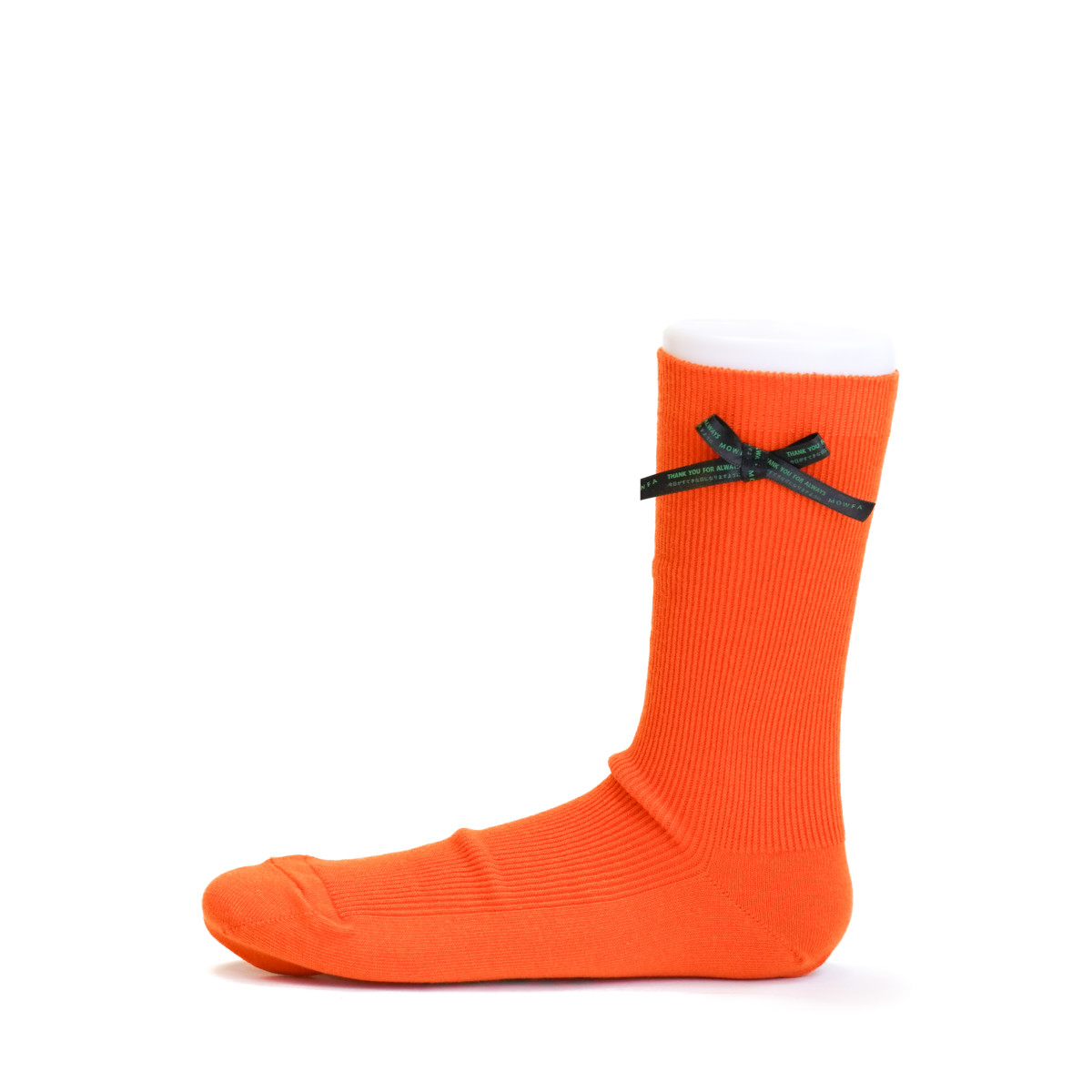【メッセージリボン】リブクルーソックス オレンジ【Women】