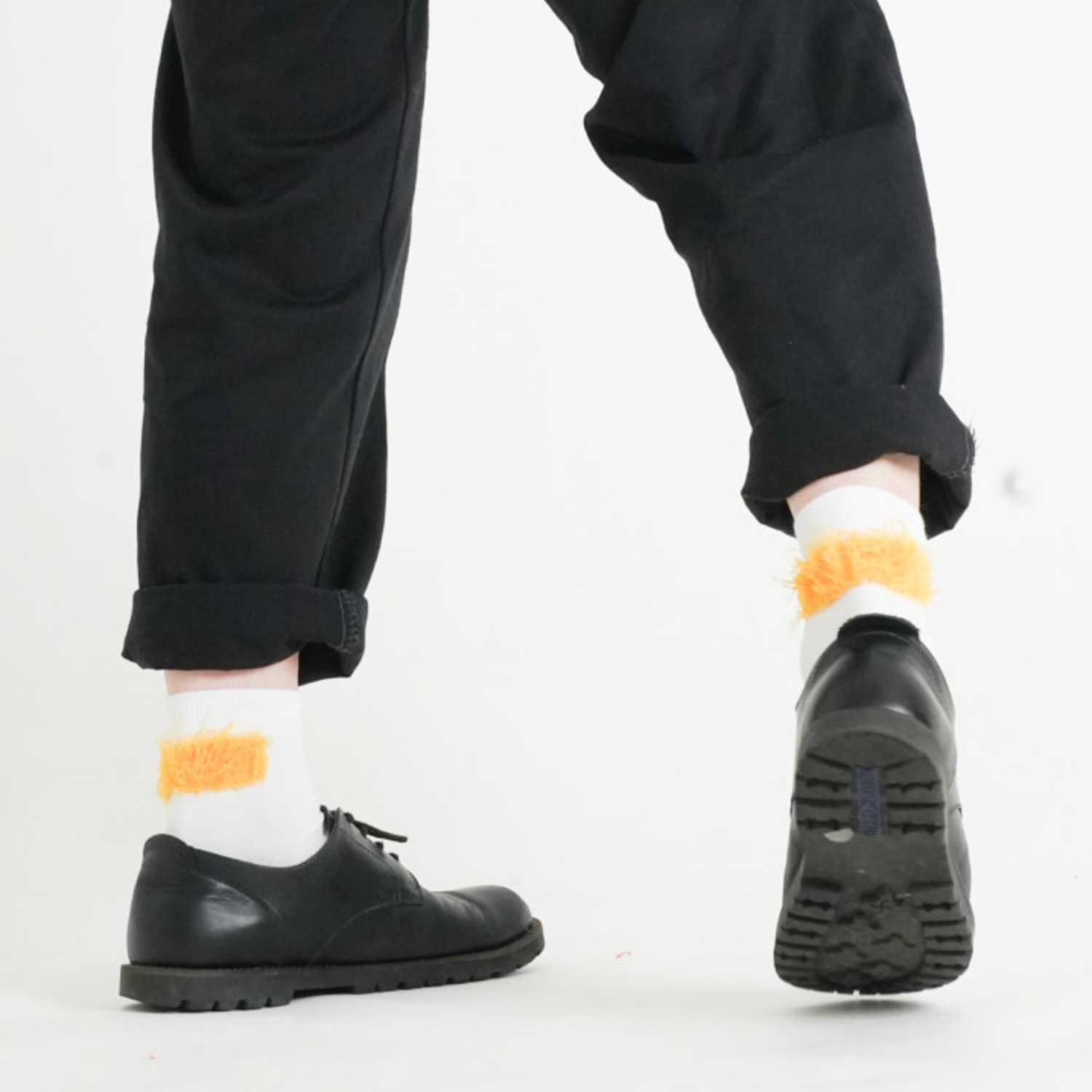 本来は肌に当たる裏側を表側にする事でモジャモジャのデザインを可能にする事ができました。従来の枠を超えたファッション性が高く希少なデザインのソックスです。