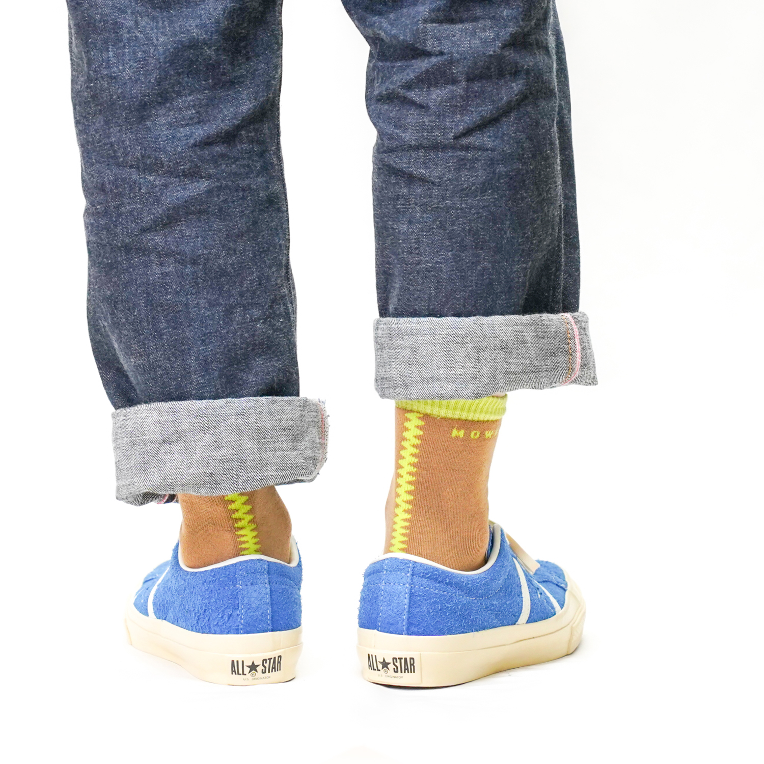 畳んだ時には縁にギザギザが入り、履いた時には真ん中にギザギザがある、見ても履いても楽しいデザインです。